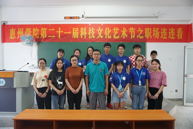 为了让同学们提前感受职场招聘的氛围,认识并了解自身的不足,有针对性地提高自己的求职能力。我院承办了惠州学院第二十一届科技文化节之职场连连看比赛。