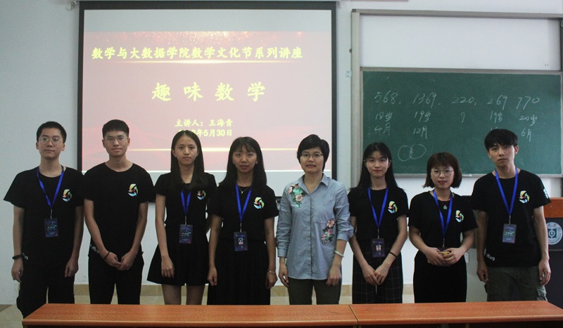 5月30日下午,在旭日大楼205多媒体课室举行数学文化节之趣味数学专题讲座。此次讲座由王海清老师主讲,18级数学与应用数学专业学生参加讲座。