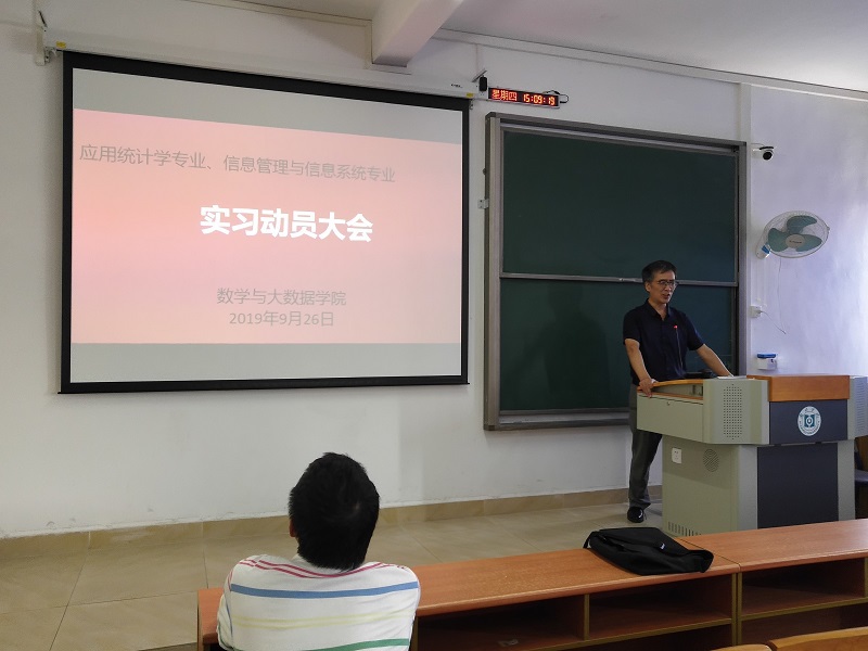 9月26日下午,我院分别于旭日教学大楼多媒体教室205、206开展数学与应用数学、应用统计学和信息管理与信息系统专业实习动员会。陈益智院长,柯忠义、杨水平副院长、教师代表以及2016级全体学生参加此次会议。