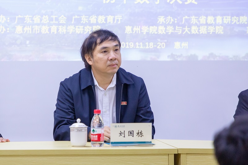我校刘国栋副校长向与会领导和参赛选手介绍了我校历史沿革,重点介绍了我校师范专业办学历程。我校现有14个师范专业,师范生占在校生的三分之一,广大毕业生已经成长为东江流域基础教育的生力军。他强调,今天的参赛选手都是通过层层选拔出来的优秀教师,是学校教育教学改革的重要力量,而青年教师教学能力大赛是构建“四有”好老师的有效平台,也是开展集体备课的展示平台,大赛的过程也是探索教与学,教学相长的教研活动。该项赛事也是惠州学院-惠州市教育局创建国家教师教育创新实验区的其中一项创新活动,给我们数学师范生培养提供了重要平台,也是U-G-S三位一体协同育人的很好载体。最后,他祝愿参赛选手赛出风格,赛出水平,希望他们通过不断的努力和磨练发展成为省级骨干教师和教学能手。