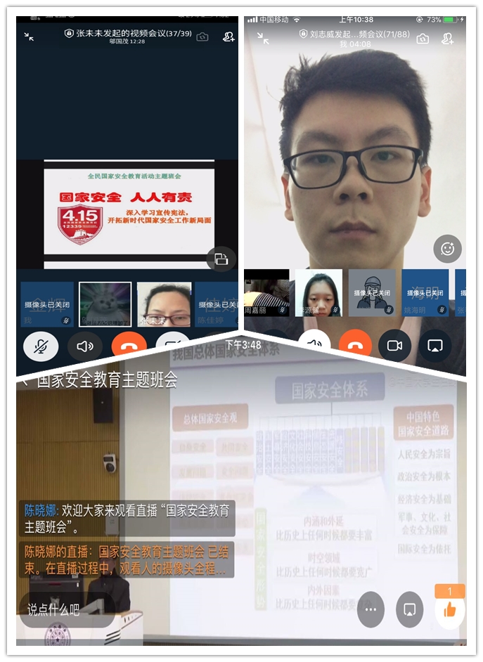 4月15日,是我国第5个全民国家安全教育日。为增强学生安全意识,维护国家安全,我院组织各班通过线上直播等形式开展“同上一堂国家安全教育课”主题班会。