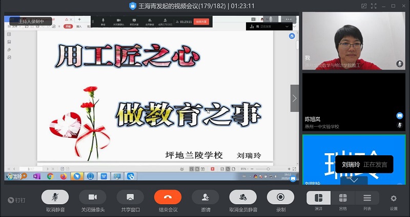 此次讲座通过钉钉视频会议的形式嵌入到课程《班主任工作艺术》中进行。“停课不停学”,通过组织线上教学与讲座活动,让同学们在学习班主任工作理论知识收获间接育人经验的同时,也感受到中学一线优秀班主任的专业魅力与人格魅力,促使大家不断思考、积极学习以提升班主任工作能力。此次活动也是第三届数学文化节的系列活动之一。
