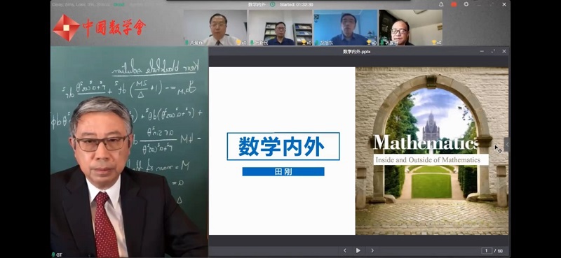 5月10日下午,我院全体师生通过线上直播的形式共同观看了“数学文化讲堂”第五讲《数学内外》,讲座由中国数学会理事长田刚院士主讲。该讲座是中国数学会网络科普讲座中的一讲。