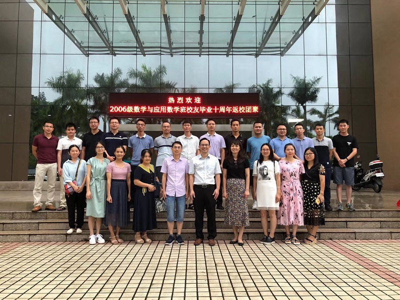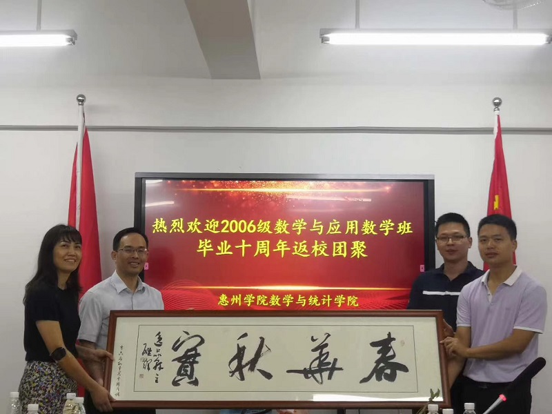 2006级数学与应用数学班班长、博罗中学团委书记古智良向老师们介绍了该班级基本情况。该班校友们逐一介绍了他们毕业十周年以来的工作、生活情况,分享了他们对于工作、生活的感想、感悟和收获。他们对学院近几年取得的成绩表示祝贺,也表达了他们对母校深深地感情,以及对母校和老师们精心培育的感恩之情,表示将一如既往地关注和关心母校和学院的发展。同时,也结合他们的工作经验和基础教育实际情况,对数学与应用数学专业师范生的培养提出了一些宝贵的建设性建议,为提高人才培养质量建言献策。
