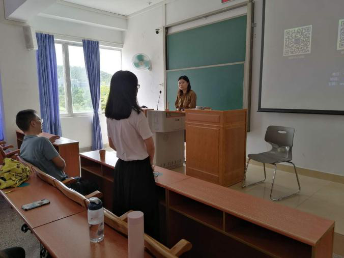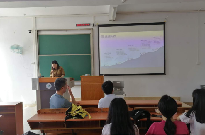 宣讲会中,维度统计咨询股份有限公司人力资源部的陈亚会经理从集团的角度介绍了公司概况、企业文化、研究的项目和企业的发展愿景,同时对于实习生的具体要求、工作内容、工资福利和发展通道进行了简单地介绍。在宣讲会的互动环节,同学们也就自己所关心的专业对口、发展平台、工作内容与上升空间等问题与维度公司的负责人进行了交流。