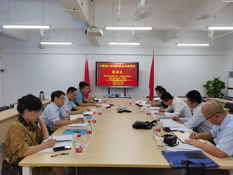 10月13日上午,市委政研室副主任李向军率队到我校开展大数据人才队伍建设专题调研,受到我校相关职能部门相关领导及相关二级学院领导热烈欢迎。双方在旭日楼数学与统计学院会议室进行座谈交流,市委政研室三级调研员钟优良、党群文化科科长余雪春、王传亮以及市大数据行业协会秘书长陈文华;科研处副处长戴华炜,数学与统计学院副院长杨水平、数据科学系主任赵昕、张学锋老师参加了座谈会。调研座谈会由教务处处长、数学与统计学院院长陈益智主持。