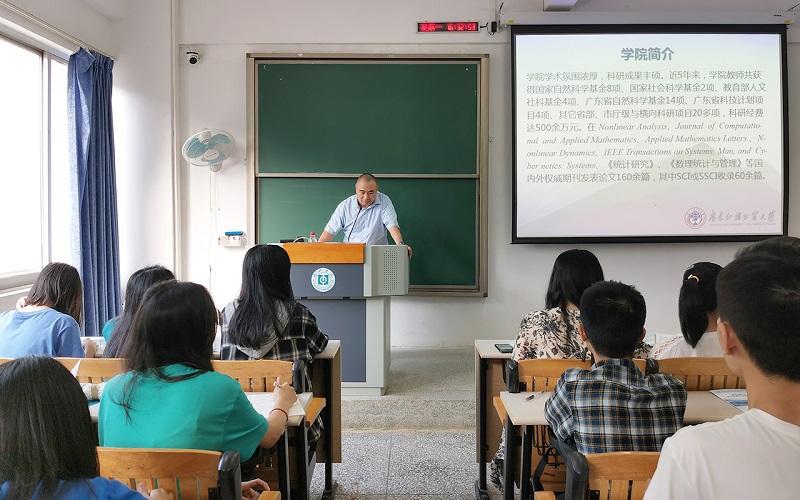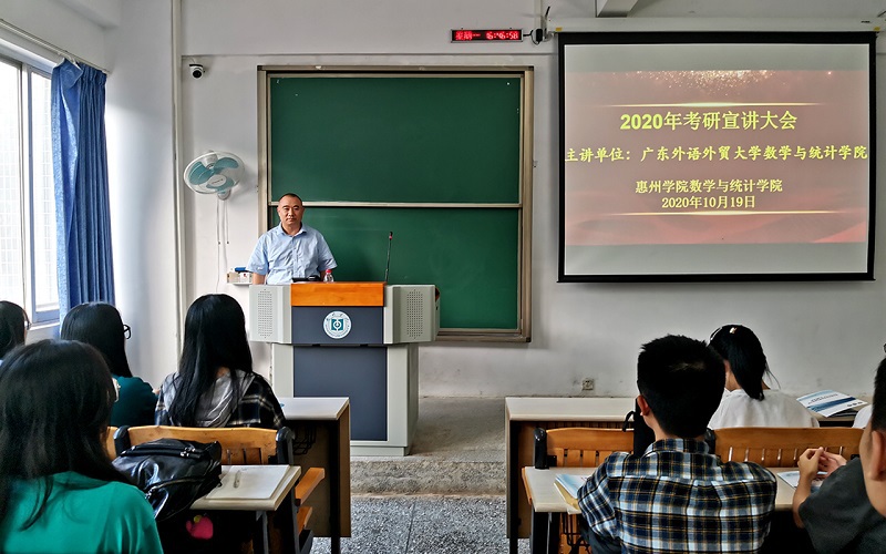 宣讲会上,广东外语外贸大学数学与统计学院副院长龙会典从广东外语外贸大学整体情况、学院的师资力量、专业建设、考研情况和优秀毕业生等方面进行了详细介绍,并表示欢迎惠州学院的学生报考广东外语外贸大学。通过讲解,我们对广东外语外贸大学的数学与统计专业硕士点有了更深的认识,也为即将考研的同学在报考方向及专业选择等提供了思路和指引。
