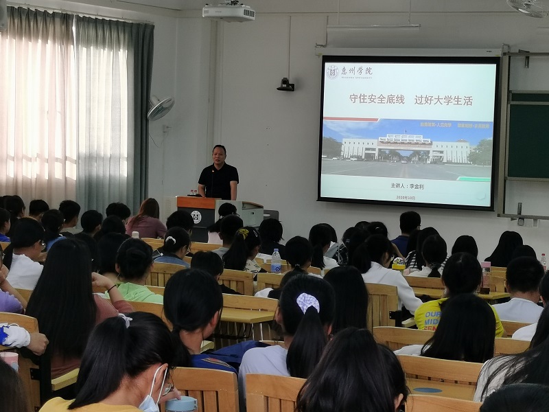 李金利处长结合教育部、省厅相关文件精神及多年一线安保工作经验,以“守住安全底线,过好大学生活”为题进行讲座。他围绕“政治安全、电信网络诈骗、校园贷、消防安全、求职就业安全、疫情防控和校园治安”等七大方面,从宏观角度系统梳理了学生周围安全隐患,结合具体事例,以现实数据为参会师生形象地介绍了校园及现实生活中存在的安全风险,以校园贷款环环相扣的经典案例呈现向大家传达了“规避风险,安全第一”的思想主题。李处长还着重介绍了如何筑牢安全防线的一系列措施,提及四个自信,法律手段与政治修养。从点滴出发,提醒广大同学注重细节做好安全防患,从提高防患意识第一位,呼吁广大师生要严格遵守学校相关安全管理制度,关注生命安全。