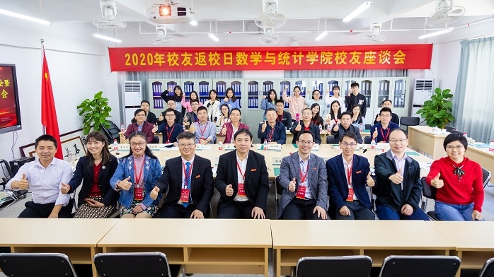 2020年11月28日为我校建校74周年暨校友返校日,我院喜迎各地校友代表返校,他们在参加学校第二届校友会第一次代表大会后,来到旭日楼三楼参加我院校友座谈会。刘国栋副校长、教务处陈益智处长、科研处蒋辉处长,我院领导班子成员、教师代表及2018级数学专业卓越班学员代表参加了座谈会。