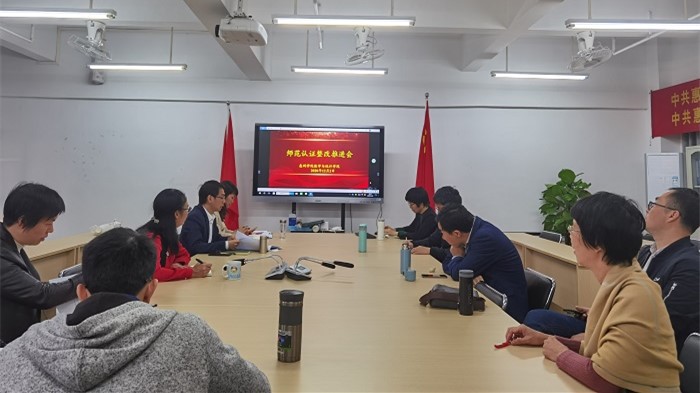 2020年12月2日下午, 我院在学院会议室召开师范专业认证整改工作推进会,学院领导班子成员、师范专业认证工作组全体老师参加了会议。杨水平副院长(主持工作)主持会议。