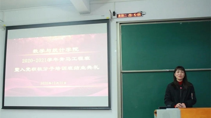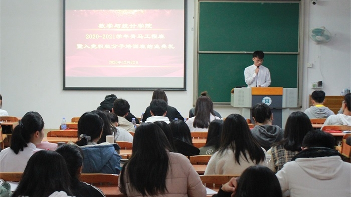 12月22日晚,我院于旭日楼206举行第二期(2020年)青马工程暨入党积极分子培训班结业典礼。全体青马班学员、团学主要班干部,党总支副书记陈海容老师、辅导员老师参加了结业典礼。
