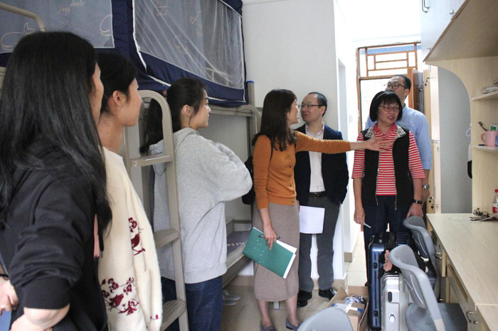 3月9日下午,我院党总支书记许秋娟率队走访学生宿舍,陈海容副书记做了动员讲话并进行分组,强调了走访宿舍相关要求及注意事项。班子成员分别领队,与四个年级的班主任和辅导员走访了我院学生宿舍。