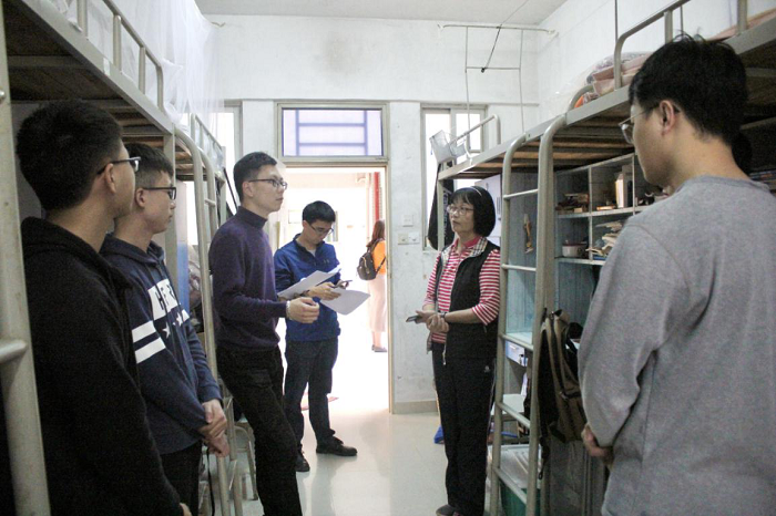 3月9日下午,我院党总支书记许秋娟率队走访学生宿舍,陈海容副书记做了动员讲话并进行分组,强调了走访宿舍相关要求及注意事项。班子成员分别领队,与四个年级的班主任和辅导员走访了我院学生宿舍。