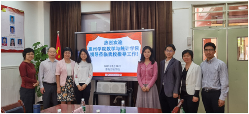 3月16日上午,在我院许秋娟书记和杨水平副院长(主持行政工作)的带领下,赵显贵副院长、教工党支部书记王海青博士、数学系主任刘玉彬博士及专任教师吴红叶老师一行到惠南实验学校调研交流和看望校友。惠州仲恺高新区惠南高新科技产业园管委会两委办副主任姚慎喻、惠南实验学校校长袁伟庆、惠南实验学校领导班子及该校数学科组部分老师参加了交流会。