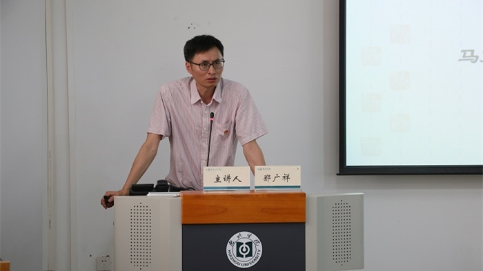为深入贯彻学习习近平总书记在党史学习教育动员大会上的重要讲话精神,结合建党100周年重要时间契机,帮助全体师生学深悟透党史,坚定理想信仰,筑牢宗旨情怀,我院于2021年5月19日邀请了学校党史学习教育宣讲团成员、马克思主义学院副院长郑广祥,在旭日楼106开展主题为“中国共产党百年辉煌与马克思主义方法论”的专题讲座,采取线上线下相结合的方式开展,我院全体师生共同参加。讲座由我院党总支书记许秋娟主持。
