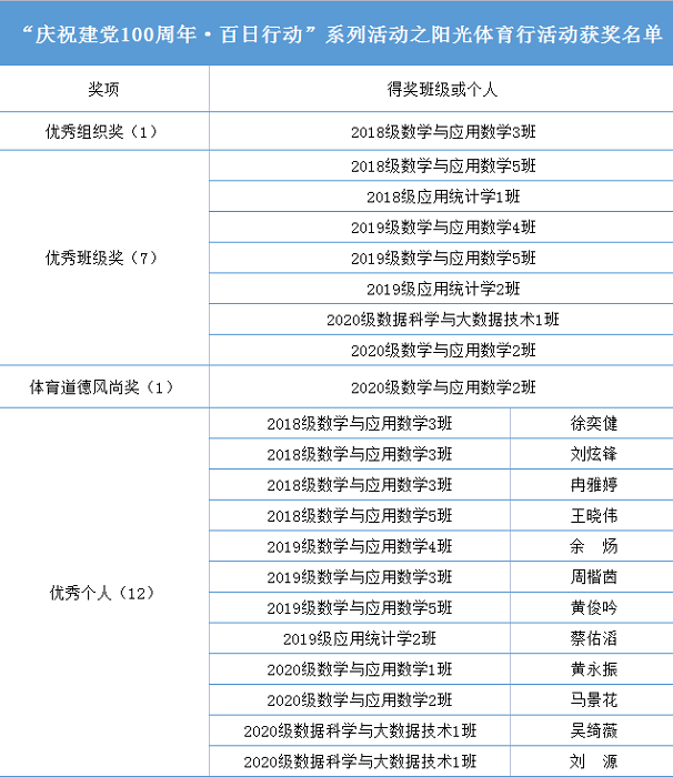 为庆祝建党100周年,宣传党的伟大奋斗历程,弘扬党的革命精神,丰富同学们的课余生活,增强同学们的身体素质,我院举行了历时100天的“庆祝建党100周年·百日行动”阳光体育行系列活动,于6月6日下午圆满结束。其他百日行动活动仍在有序进行中。