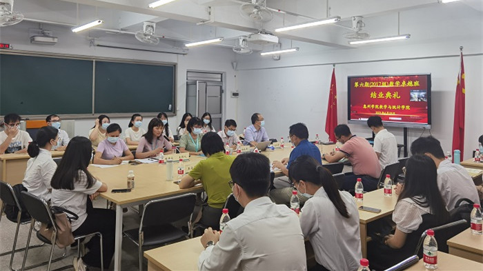 6月18日晚,广东省卓越人才培养计划项目及广东省卓越教师培养计划改革项目第六期(2017级)数学卓越班结业典礼在学院328会议室举行,典礼采取了线上线下结合的方式。惠州市惠城区教师发展中心主任、我校兼职副教授、卓越班校外指导教师涂志荣,教务处处长陈益智,学院党政领导班子成员、数学教育实训中心主任沈威、数学教育俱乐部指导教师王海青、辅导员代表,以及第六期(2017级)数学卓越班学员参加了结业典礼。典礼由学院党总支副书记陈海容主持。