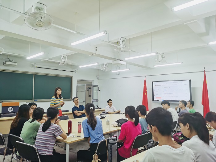 在师生交流环节,同学们积极与老师互动,就具体考研问题等进行交流,柯教授一一解决同学们疑问的同时,组织同学们进行了分组学习。