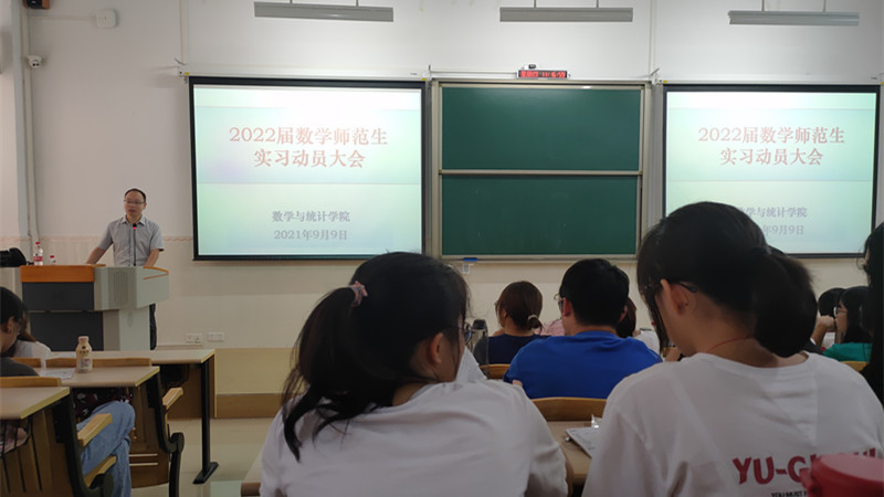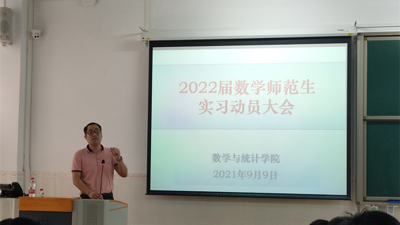 为确保数学与统计学院实习工作的顺利开展,提高我院大四学生的实践能力,我院于9月9日上午,分师范专业和非师范专业在教学实验大楼105、106教室分别召开了2018级实习动员大会。学院赵显贵副院长、陈海容党总支副书记,各实习小组负责人、指导教师代表,毕业班班主任、辅导员及2022届全体毕业生参加了动员大会。动会员分别由实习工作小组负责人沈威博士、陈国汉博士主持。