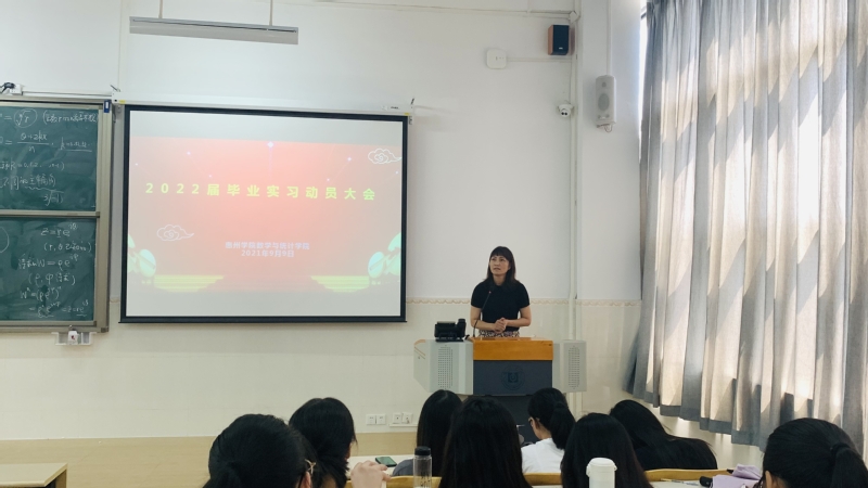 在数学与应用数学专业的实习动员会上,赵显贵副院长从实习安排、专业知识运用、疫情防控等方面对本次实习工作进行了介绍和部署,同时也对同学们提出了几点要求和希望,一是要求同学们端正态度,认真完成实习任务和相关要求,服从学校和实习单位双重管理;二是虚心向指导教师学习,努力探索适合自己的教学模式,提升自身教学技能;三是注意人身、财产安全,遵守疫情防控期间的各项规章制度。
