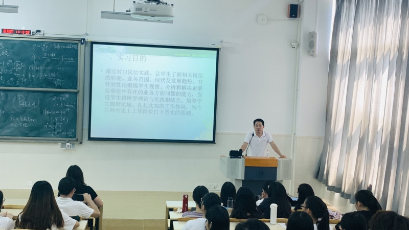 在非师范专业实习动员会上,统计系、信管系主任陈国汉老师向同学们解读了应用统计学及信息管理与信息系统专业的实习方案,介绍了实习工作具体安排、基本要求和考核方式等,同时强调了实习过程中要端正言行,积极配合实习单位的工作安排,遵守各项规章制度。他希望同学们通过实习阶段的锻炼,熟悉从校园到社会的过渡,提升个人的素养,明确自己毕业论文的选题方向,为完成毕业论文做好准备。动员会最后,陈海容副书记也向同学们提出几点希望,一是遵守纪律,注意安全,确保顺利完成实习任务;二是提高认识,认真对待实习工作,把实习作为了解行业、社会和检验学习效果的重要实践教学环节;三是学以致用,在实习过程中,努力做到理论与实践锻炼相结合,争取学有所获。