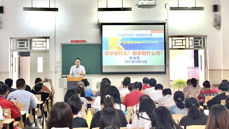 10月16日上午,2021年广东省乡村骨干教师高级研修班(数学)及第八期(2019级)数学卓越班全体学员在旭日科技大楼B座104共同聆听了专业发展及成长专题讲座。讲座由惠州学院教务处处长陈益智教授主讲,数学与统计学院党总支副书记陈海容主持。