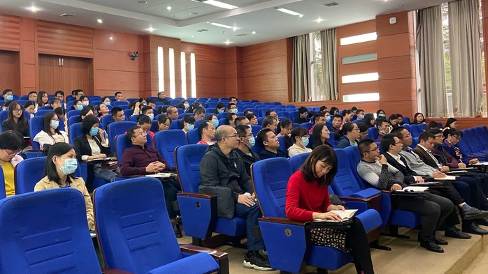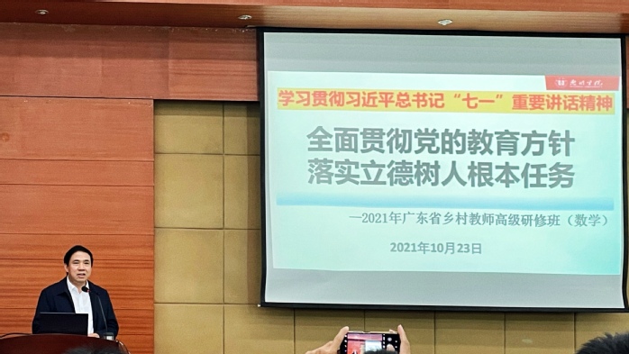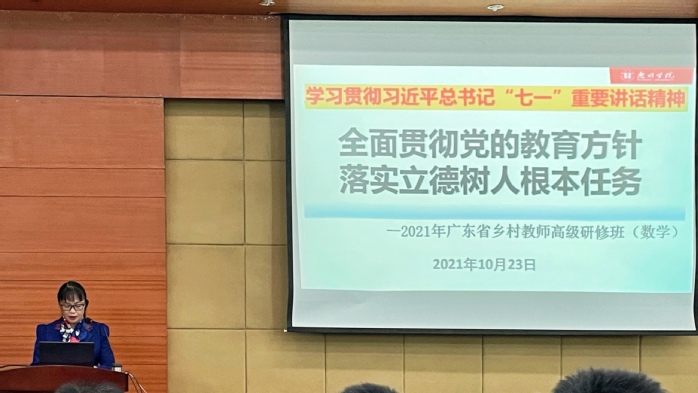 10月23日下午,刘国栋副校长在文城视频会议厅作 “全面贯彻党的教育方针,落实立德树人根本任务”专题讲座。2021年广东省乡村教师高级研修班(数学)、第八期(2019级)数学卓越班全体学员、惠阳教育局正高级教研员钟文辉团队老师以及我院教师代表共同聆听了讲座。本次讲座由数学与统计学院党总支书记许秋娟主持。