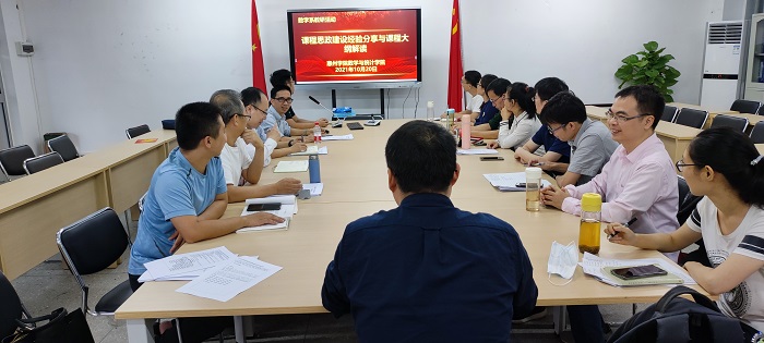 10月20日下午,我院数学系举行了以“课程思政建设经验分享与课程大纲解读”为主题的教研活动,活动由数学系主任刘玉彬副教授主持,学院杨水平副院长(主持全面工作)、数学系专任教师及承担了数学与应用数学专业课程的相关教师参加了活动。