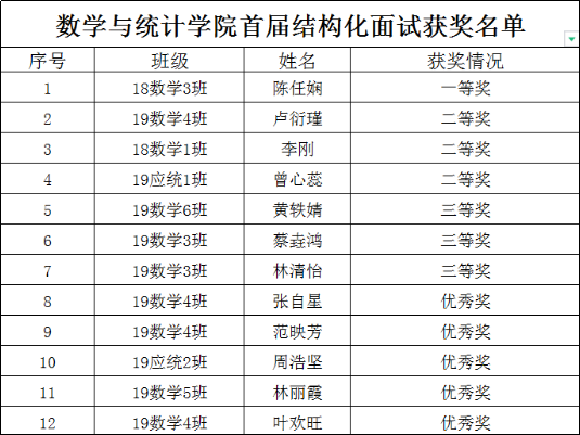 附:数学与统计学院首届结构化面试获奖名单
