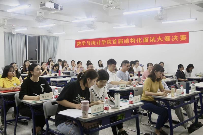 我院首届结构化面试大赛决赛于11月4日晚上在旭日楼301教室举行,来自大三、大四的16名选手参加了决赛。学院党总支副书记陈海容、数学系主任刘玉彬、思政导师王海青博士以及全体辅导员参加了决赛并担任评委。第八期(2019级)数学卓越班学员代表、各年级对结构化面试感兴趣的学生代表观摩了比赛。