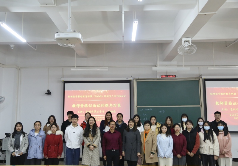 我院一直以来非常重视师范生的实践教学环节以及第二课堂的开展,第二课堂融入第一课堂,努力为师范生教师教育技能提升和个人成长创造条件和平台。此次讲座为同学们下个月的教师资格证面试进行了有效的针对性辅导,帮助同学们做好充分准备。此次活动也是校地数学教师教育联盟(U-G-S)协同育人研讨活动之一。