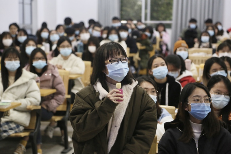 在提问交流环节,同学们积极提问互动,勇跃参与,气氛热烈,邱炯亮副校长针对我院学子提出的问题作出了详细解答,包括试讲的流程、试讲细节、教案比例分配、板书设计等。