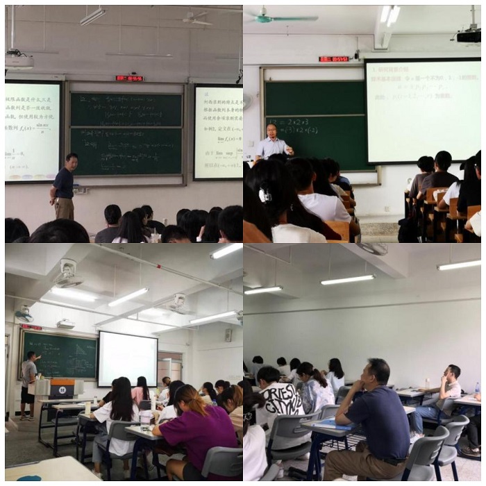 5月24日上午,数学系组织老师们分别观摩了庄容坤教授、赵显贵副教授和杨世超博士三位教师的公开课,涉及数学专业基础课《数学分析2》、《高等代数1》以及公共课《概率统计》。三位教师授课条理清晰,注重讲练结合和启发引导,课堂氛围活跃、师生交流顺畅、课堂纪律良好。
