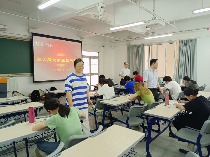 2022年5月28日下午,惠州学院第六届大学生数学竞赛数学专业组和非数学专业组在我校顺利举行。全校500多名学生参加了本次竞赛,分别来自数学与统计学院、计算机科学与工程学院、电子信息与电气工程学院、化学与材料工程学院、地理与旅游学院、经济管理学院、建筑与土木工程学院、生命科学学院等8个学院22个专业。