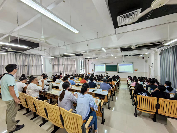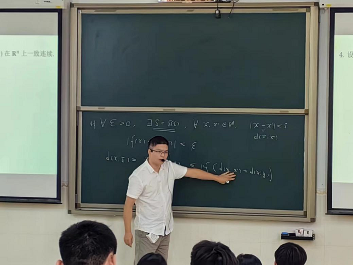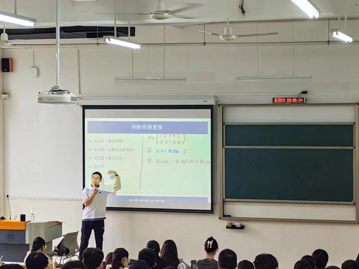 我院数学系组织老师们于10月19日上午在科技楼开展了教研活动,分别聆听了张文超博士和汪鹏博士两位教师的公开课,涉及数学专业基础课程《近世代数》和《实变函数》。张老师结合典型例题,认真细致地讲授了奇偶置换的定义以及几种不同的求解方法,语言流畅,思路清晰,课堂氛围活跃。值得一提的是,张老师在PPT课件中使用手写板,教学方式新颖,能够使学生加深理解知识点的逻辑架构。汪老师利用板书讲解了《实变函数》点集章节中的重要习题,教态自然,公式推导严谨,思路清晰,重难点突出。