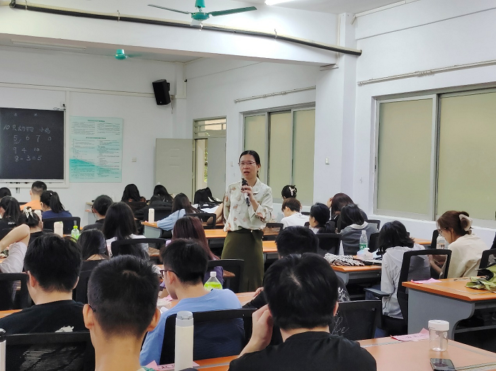 罗苑梅老师首先邀请学生唱一首歌作为热场活动,活跃课堂氛围,以班主任的美在何处展开教学。罗老师通过照片给数院学生呈现了中小学生活动丰富、阳光积极的一面,并诠释了何为生命教育,鼓励学生在学好专业知识的同时,也要学会带班级管学生。随后罗老师介绍了班主任的工作职责以及新时代班主任的标准,让学生明白要育人、教书、科研三项并进。最后,以全班学生齐颂汪国真的《为了明天》作为讲座结尾,以鼓舞学生奋进,努力成为一名优秀班主任。