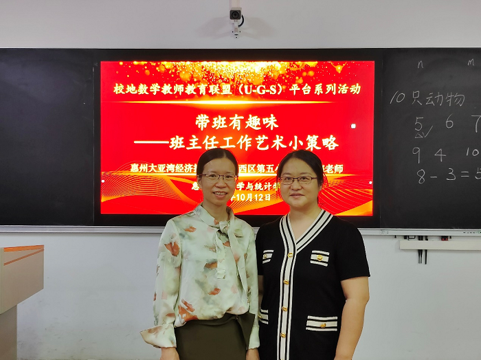 罗苑梅老师作为广东省特级教师、南粤优秀教师、广东省中小学各班主任工作室主持人、广东省中小学“百千万人才培养工程”小学名班主任,开展的此次精彩讲座让我院学子感受颇深。同时此次班会课讲座也是《班主任工作艺术》的嵌入课程,更是校地数学教师教育联盟(U-G-S)协同育人研讨活动之一。名师进课堂示范引领课活动使学生们的教育视野得到开拓、专业素养得以提升。名师积极进取、学习无止境的拼搏精神使所有参会学生备受鼓舞。
