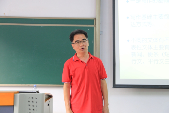 为深入学习宣传贯彻党的二十大精神,进一步深化“青年马克思主义者培养工程”相关工作,3月29日下午,我院于旭日219开展第五期青马工程暨入党积极分子培训班青马学堂第四课——《实用文本写作》,本专题由文学与传媒学院张波教授主讲,学院第五期全体青马学员、新媒体部学生干部参加了此次培训。讲座由林培琪老师主持。