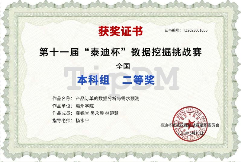 4.第十一届“泰迪杯”数据挖掘挑战赛全国二等奖、广东省一等奖