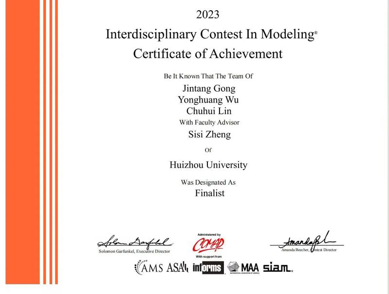 1.美国大学生数学建模竞赛特等奖提名(Finalist)
