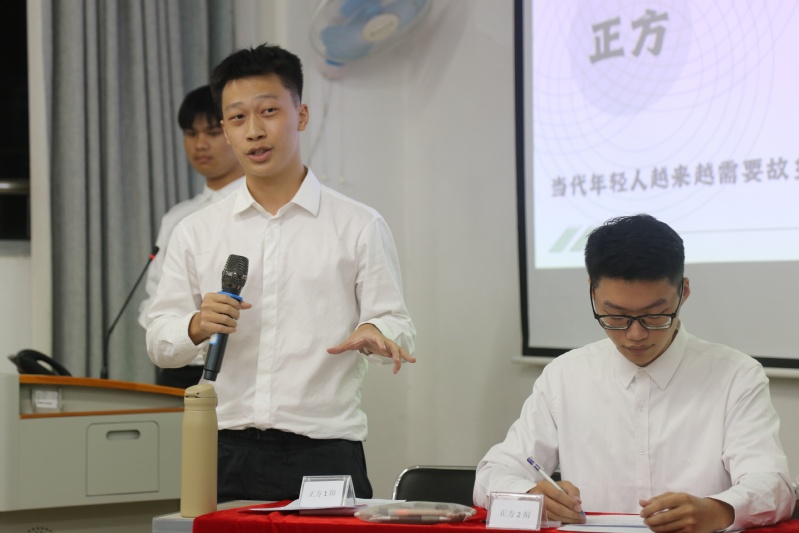 辩论表演赛中,同学们围绕“当代年轻人越来越需要故乡还是越来越不需要故乡”的题目,从开篇立论、质询、质询小结、盘问、对辩、自由辩、结辩总结陈词七个环节展开激烈的辩论交锋。辩论表演赛互动环节,许多同学围绕辩论相关提出问题,展现了大家对辩论的浓厚兴趣,来自辩论队的成员也积极回应作答。此次辩论表演赛不仅为同学们展示了辩论赛的基本流程与形式,更有助于让新生们感受到辩论的魅力与内涵。