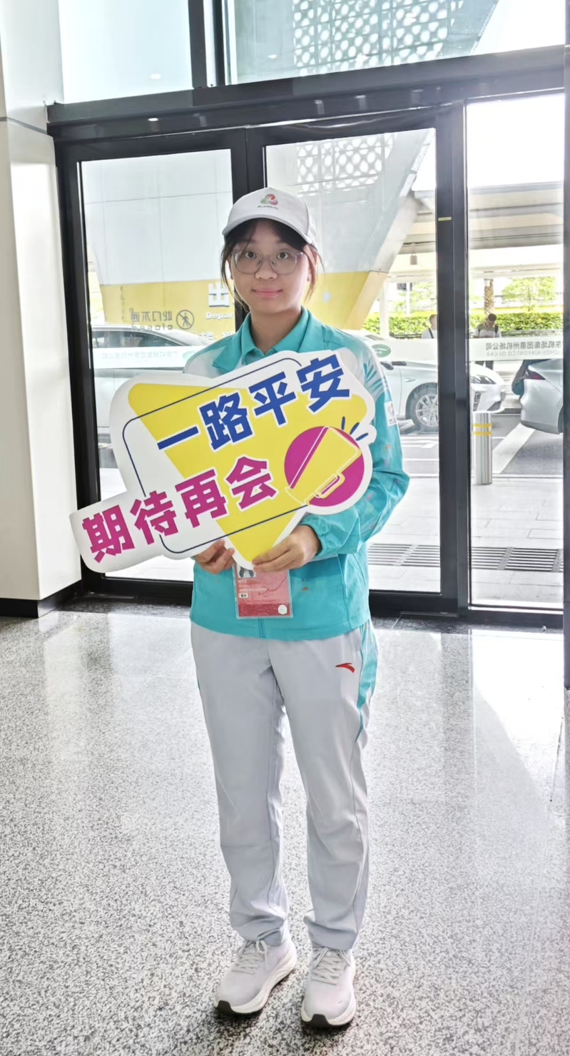 第二次出征,我以机场接待志愿者的身份,成为最早迎接运动健儿的“惠州名片”。褪去赛场的锋芒,他们有着最真实可爱的模样:有的腼腆内敛,有的爽朗活泼,而最触动我的,是他们最纯朴的礼貌与真诚。无论接机时的初见还是送机时的道别,他们总会主动向志愿者问好致意;