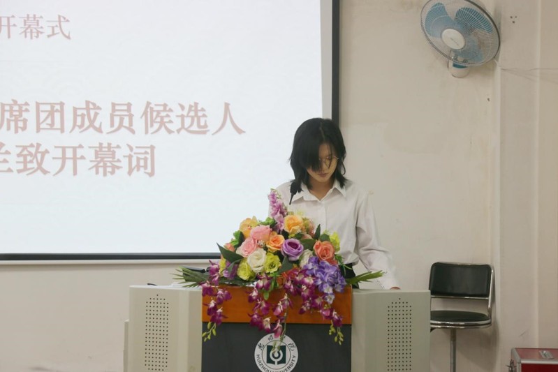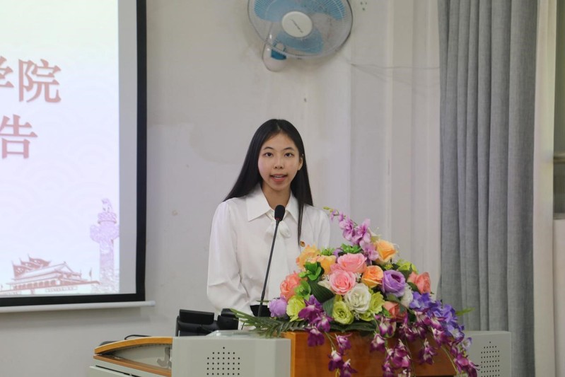 校学生会主席团候选人曾秋兰在会上致辞,肯定了过去一年我院学生会的工作成绩。围绕未来发展,她提出“强化政治引领、聚焦服务主业、夯实队伍建设、勇于创新实践”的期望,以期我院学生会建设一个富有理想、关心同学、清新阳光的学生组织,为学校发展贡献青春力量。