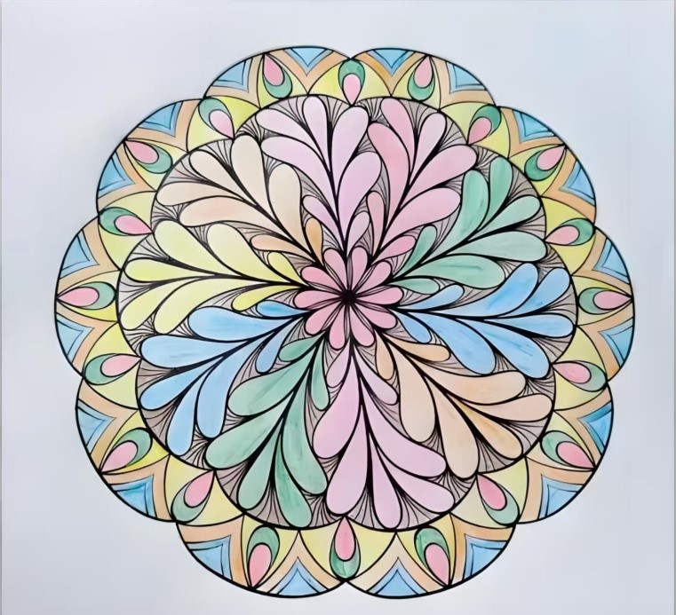曼陀罗绘画能让人通过专注创作平静思绪、释放压力与负面情绪,既训练注意力以让人活在当下、提升专注,也能将无意识情感投射到画中以帮助了解内心真实世界与情绪、实现自我认识。