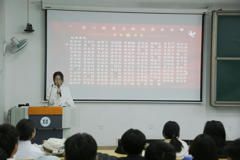来自24应统1班的黎紫芸同学作为第六期青马班优秀学员代表,她表示通过在青马班的学习不仅提高了学员们的思想素养,更通过扎实的技能学习提升了综合能力,也让同学们在实践中更加团结友爱,她呼吁学员们将勇于担当的青马精神在今后的学习和工作中延续下去。