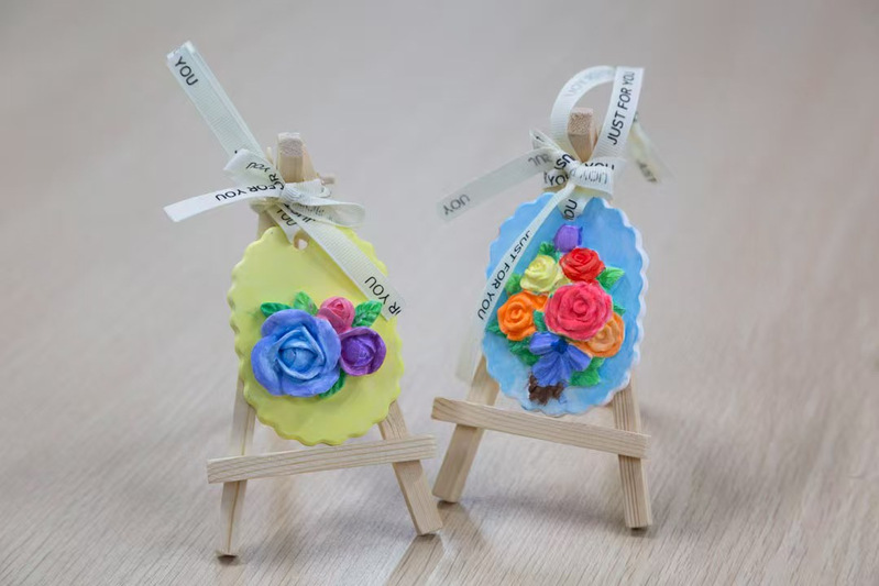 随着作品陆续完成,一件件独具风格的彩绘花艺惊艳呈现。分享环节中,参与者纷纷表示:“我创作出了独一无二的花”“原来枯萎的花也可以如此美丽”“我的配色充满了春天的气息”。每件作品都凝结着参与者的灵感与情感,也成为他们对生活美学的一次生动诠释。