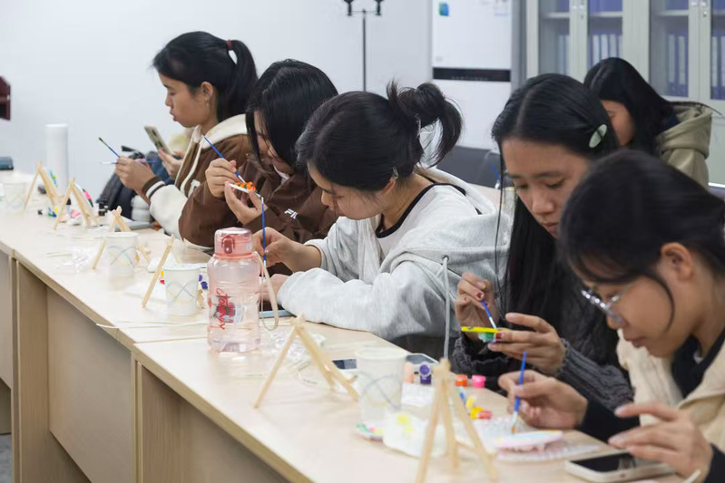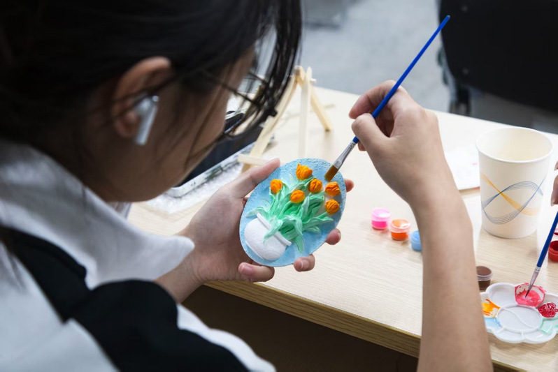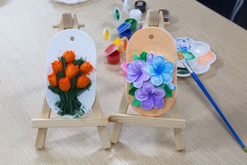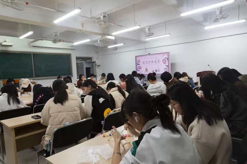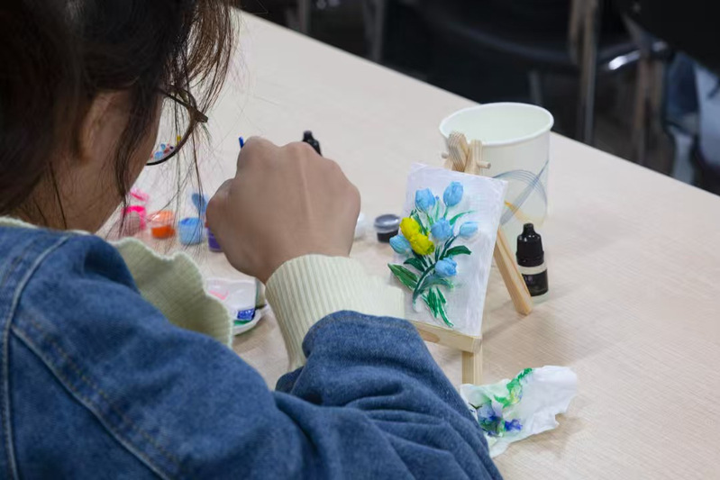 活动中,每位参与者都化身为“花艺艺术家”,通过手中的画笔为花朵赋予独特生命力。现场气氛安静而投入,笔触与花瓣轻触的细微声响、成员间偶尔的技巧交流,与众人专注的姿态共同构成了一幅动人的创作画面。大家或细致铺色,或大胆挥毫,在互动中激发灵感,在色彩与构图中探索个性表达。
