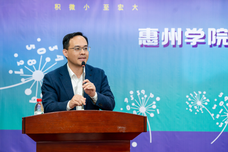 数学与统计学院院长杨水平在发言中强调,本次论坛活动既是校友与母校、校友间的沟通交流平台,更是促成发展共同体、助力惠州基础教育高质量发展的重要纽带。他从三位校友分享中提炼出“守初心、谋创新、聚合力”的感悟,勉励同学们立志成长成才、深耕数学领域,拥抱时代变革与新技术,依托多方平台的合力持续成长,成为2035年我国建设成教育强国的见证者、参与者。
