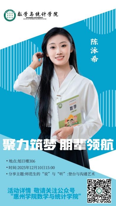第一场科研竞赛实操指南的干货余温未散,数学与统计学院“聚力筑梦,朋辈领航”系列朋辈分享会精彩再续!师范技能进阶、数学学习秘籍、成长规划智慧三大核心专场接力登场,三位优秀学姐倾囊相授,陪你解锁大学成长全维度技能,逐梦之路不再迷茫~