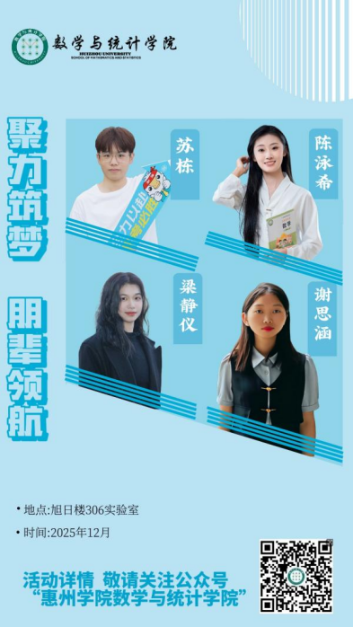 梁静仪,女2023级数据科学与大数据技术专业学生,多元角色成长实践者——现任数学建模俱乐部会长、学院团委委员,身兼数职仍兼顾学业与实践,获评校级三好学生、优秀共青团干部等称号,获校级奖学金,在选课规划、时间管理、勤工助学等方面积累了丰富经验。